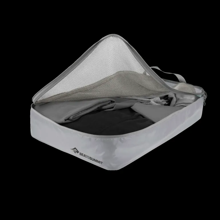 Sea To Summit Eco Travellight Ultra Strain Garment Mesh Bag L är en praktisk packpåse som kan packas platt när den är tom och kommer med slitstarka och rejäla dragkedjor med starka greppflikar för enkel och säker stängning och öppning.