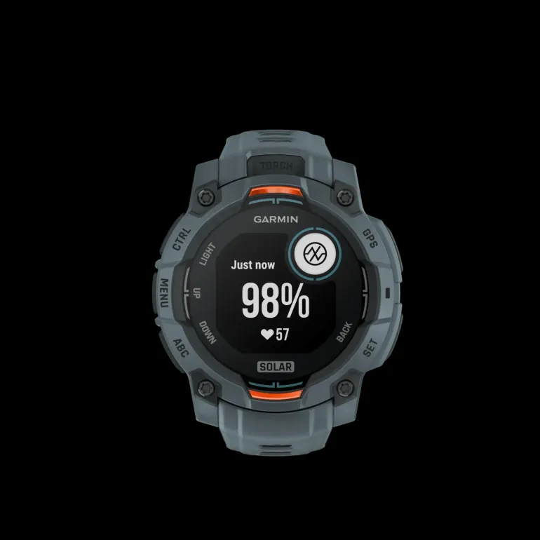 Smartklockan har en inbyggd treaxlad kompass och en barometrisk höjdmätare som håller dig på rätt spår. Multibands-GPS:en med SatIQ™-teknik ger också utmärkt positionering, samtidigt som batteritiden optimeras. De kontinuerliga funktionerna för hälsa och välbefinnande håller dig i kontakt med kropp och själ med pulsmätning på handleden, avancerad sömnövervakning, pulsoximetermätningar med mera – detta är inte en medicinteknisk produkt, och de data som presenteras är avsedda att vara en nära uppskattning av spårade mätningar (pulsoximetermätningar är inte tillgängliga i alla länder). Instinct 3 erbjuder även den kontaktlösa betalningslösningen Garmin Pay™ (läs mer om vilka banker som stödjer tjänsten).