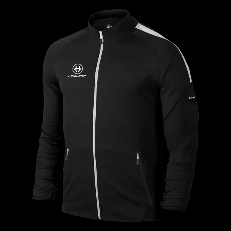 Modern träningsjacka i bekvämt material. Med en ficka fram på varje sida och Unihoc-logotyp. Normal passform.