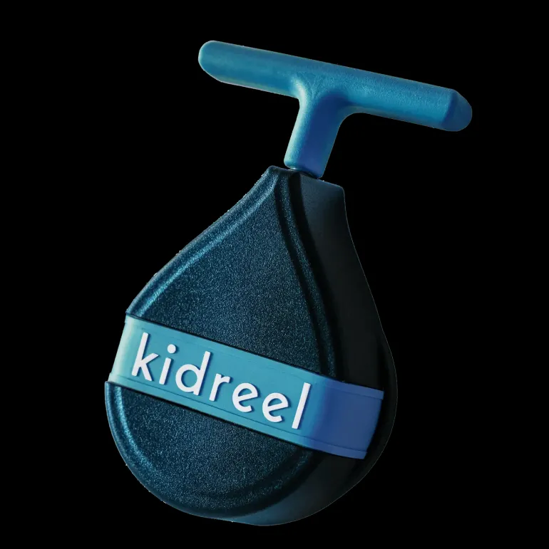 Med Kidreel Blue kan föräldrar bogsera sitt barn. Det är en rulle som enkelt monteras på barncykeln och automatiskt spolas tillbaka så att du kan bogsera dem vid behov. Produkten passar från det att barnet lärt sig att cykla, till den dag de kör om mamma och pappa i nedförsbacken.