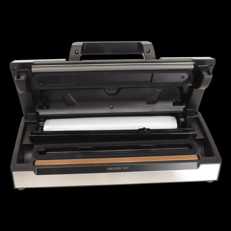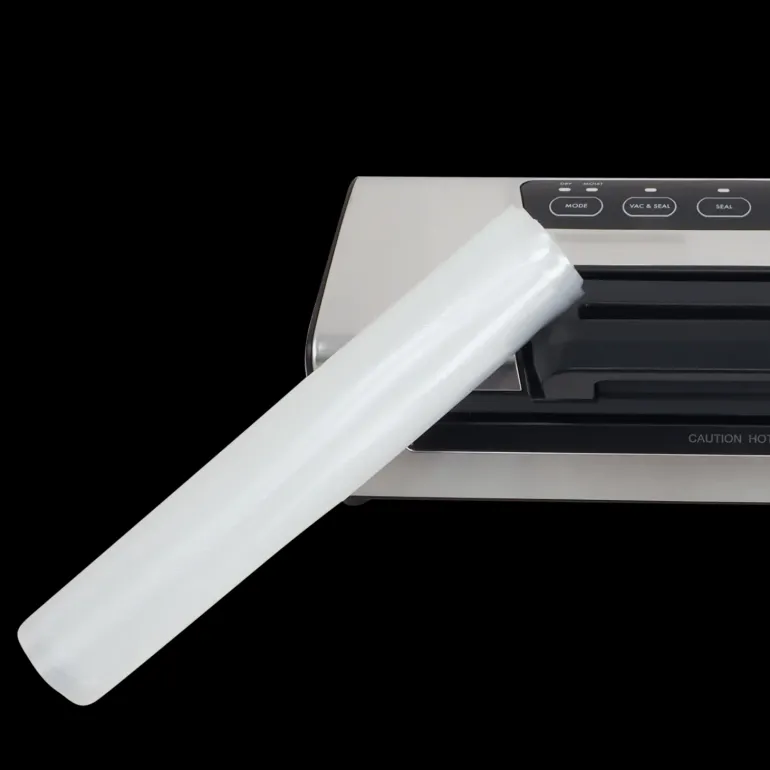 Praktiskt handtag med enhandsgrepp och inbyggd kapare gör hanteringen enklare. Den har även integrerad förvaring för plastrullar, så att du alltid har vakuumpåsar nära till hands och enkelt kan justera påsens längd.