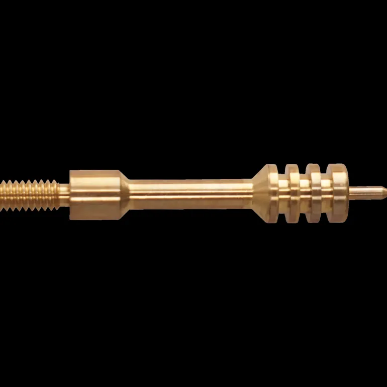 Mässingsjagg till läskstång, används för att föra putslappar och draglappar genom loppet. Bra passform som minimerar skador i loppet. – Utvändiga gängor: 8–32”.