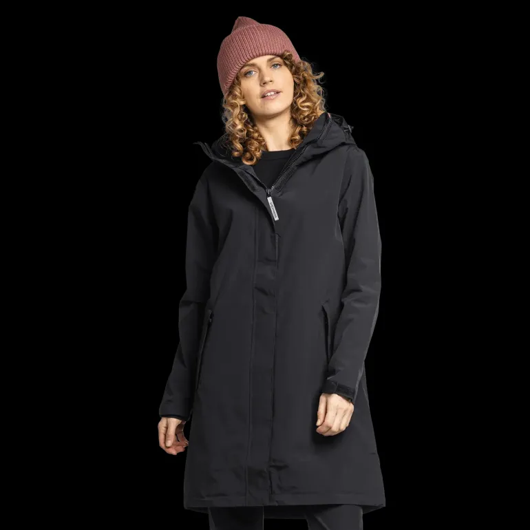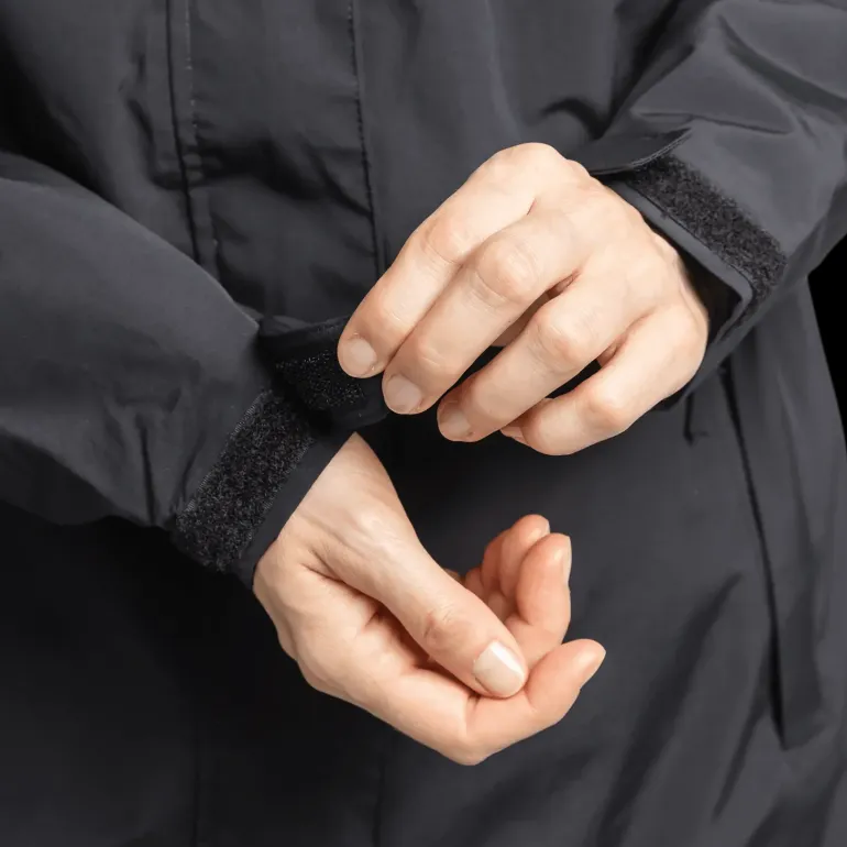 I praktiska fickor med kardborrestängning och klaff i sidan kan du förvara personliga tillhörigheter. Parkasen har tvåvägsdragkedja och huva som enkelt kan anpassas till optimal passform.
