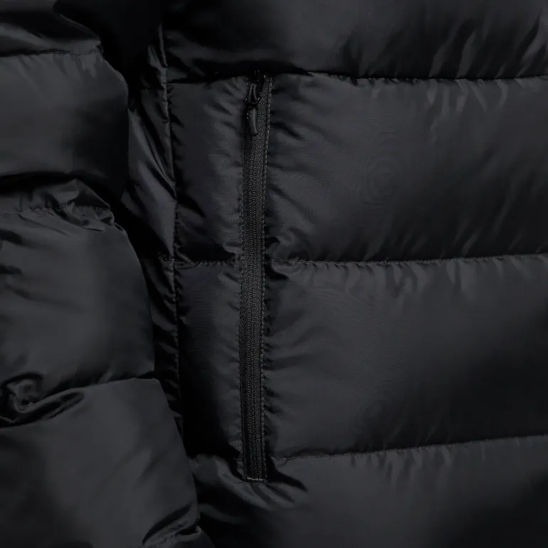Jackan är fylld med högkvalitativt dun och har en fyllnadsgrad på 600 CUIN som består av 80 % dun och 20 % fjädrar. Den är behandlad med fluorkarbonfri DWR, vilket ger bra skydd i dåligt väder.