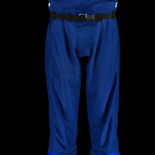 Smidig och lätt bandybyxa i slitstarkt material. Designad för att kunna bäras över skyddsutrustningen. Bälte i midjan och kardborrereglering i benen.