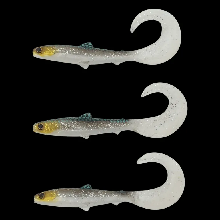 Softbait med lockande rörelsemönster och fladdrande svansparti. Realistiska detaljer och spår för offsetkrok. Lämplig för predatorfiske.