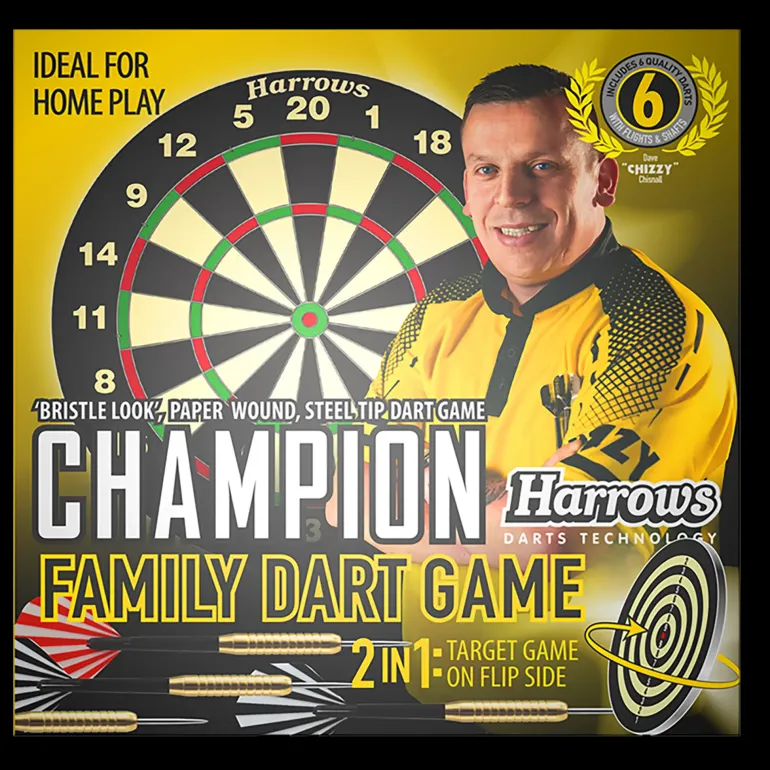 Champion Family Darts Game från Harrows är perfekt för en rolig kväll med familj eller vänner. Två uppsättningar med tre pilar ingår, med en vikt på 18 gram.