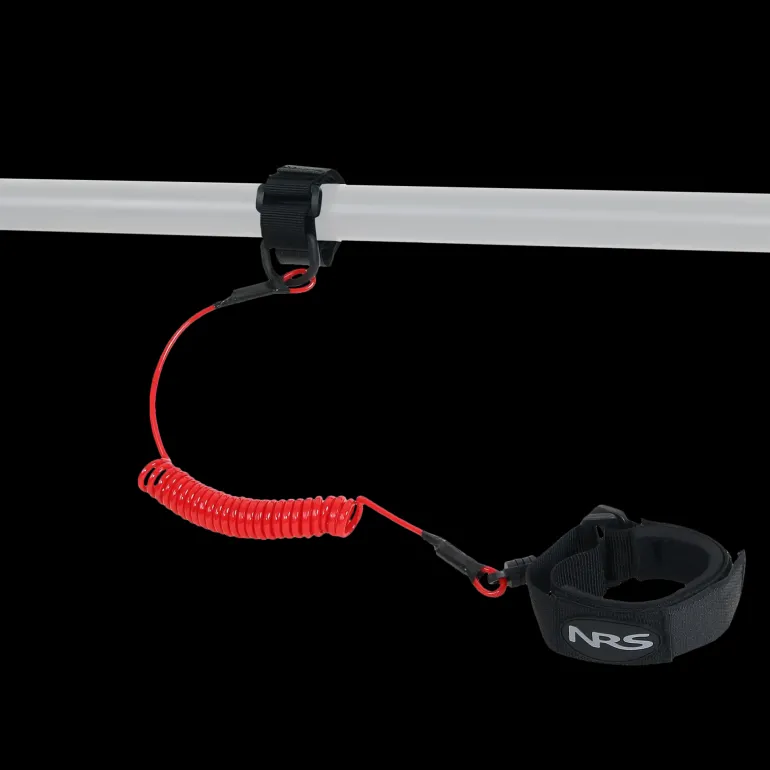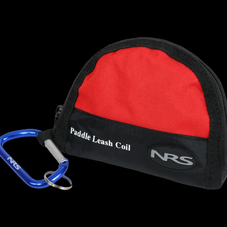 NRS Coil Paddle Leash levereras i en liten väska med karbinhake. Remmen kan även fästas runt handleden.