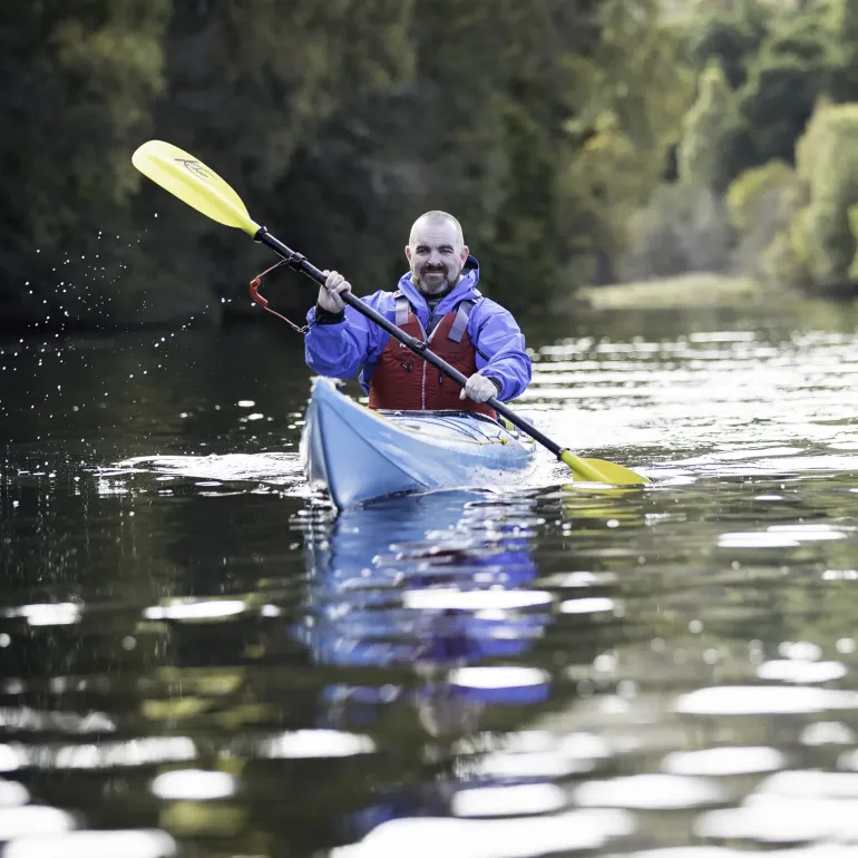 Paddelrem som gör att du inte tappar paddeln. Den ena änden fästes i kajaken och den andra i paddeln med kardborreband.