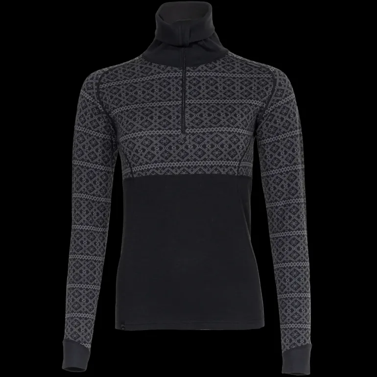 Mjuk och bekväm tröja med två lager och kvartslång dragkedja tillverkad i en ullblandning som behåller värmen och ger fukttransporterande och temperaturreglerande egenskaper.