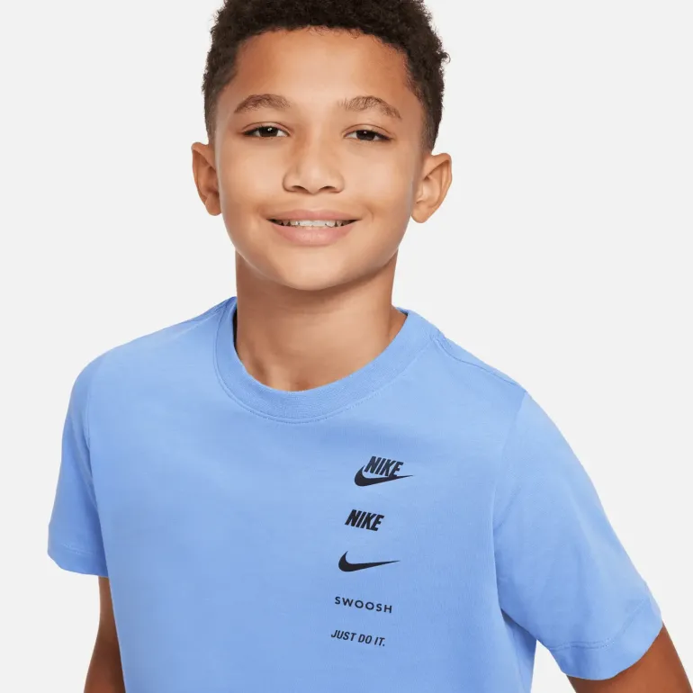 Klassisk t-shirt med tryck på framsidan och en stor Nike-logga på baksidan. Rund hals, korta ärmar. Passar för en sportig vardag.