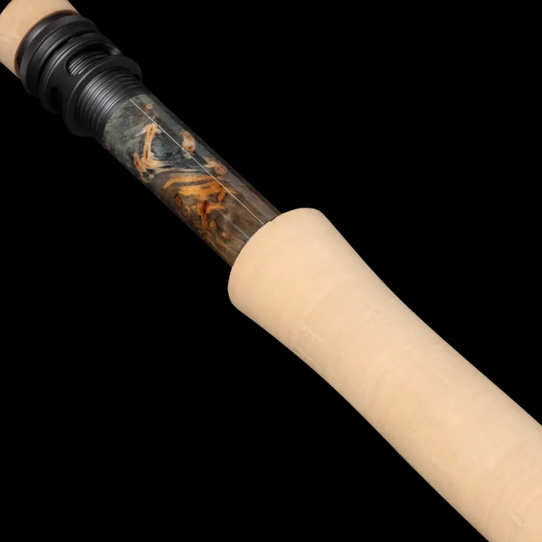 Nya, diskreta full wells-handtag tillverkade av 3A kork utan gummiinlägg. Detta reducerar mängden epoxy i handtagen. Alla modeller har fighting butt, på de lättare modellerna en liten, diskret typ. Från klass #7 och uppåt är fighting butt i full storlek.