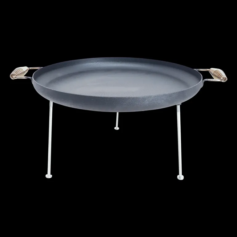 Traktörhäll med tre kraftiga och avtagbara ben. Tillverkad av högkvalitativt varmvalsat stål. Kan användas med öppen eld eller gasbrännare. Sidokant: 5 cm.