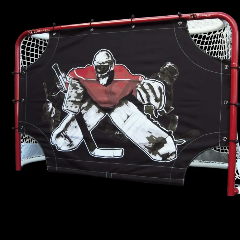 Full Size Street Hockeygoal With fra Mohawke levereras med en avtagbar målduk med fyra öppningar, en i varje hörn. Detta säkerställer utmärkta möjligheter att öva skottprecisionen.