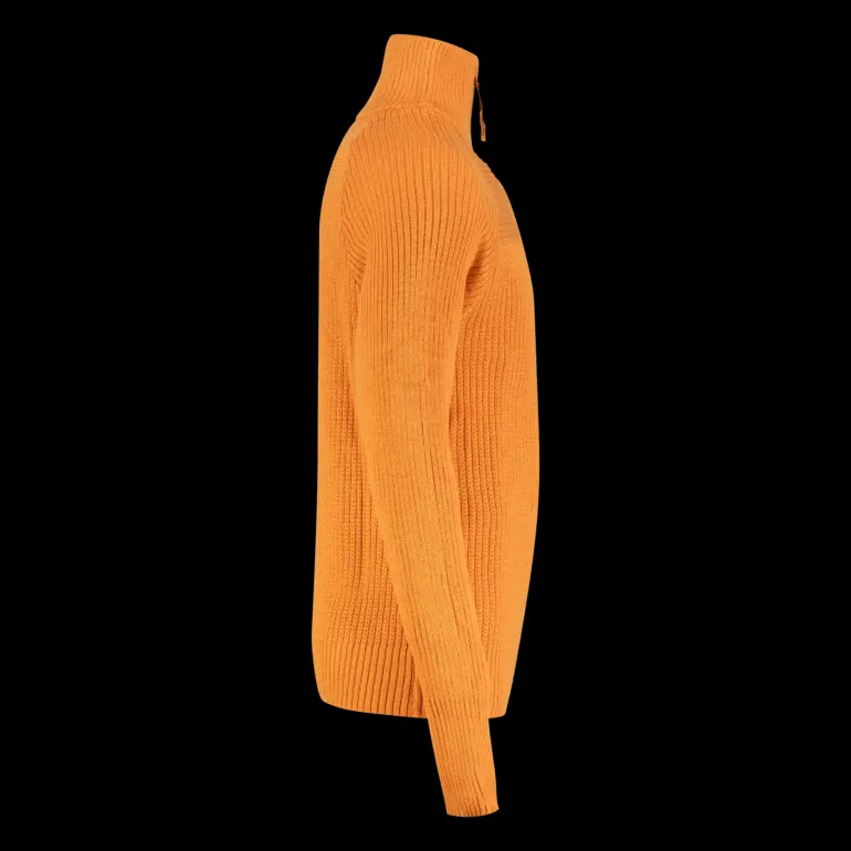 Varm och skön ulltröja med hög hals och dragkedja i halsen. Muddar med tumhål. Tillverkad av 100 % ull.