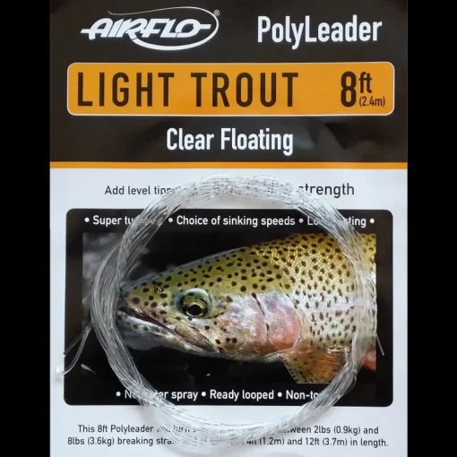 Polytafs vid användning med tunna tafsar. Flyter och har utmärkta stötdämpande egenskaper. Mycket lämplig i klart vatten och älvar med skygg fisk. Längd 8 fot.