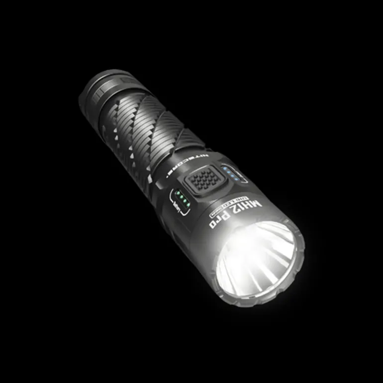 Nitecore MH12 Pro är en kraftfull ficklampa med ett 1×21700-batteri som ger upp till 650 timmars brinntid på ULTRALÅG-nivå; USB-C-laddport för enkel laddning.