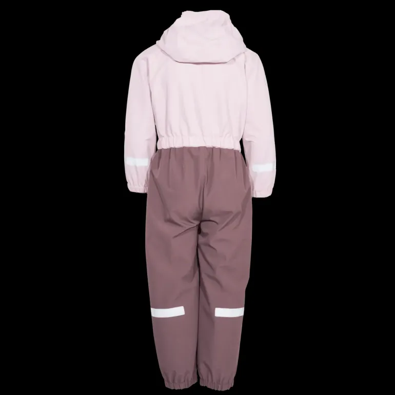 Skön overall med avtagbar huva i vindtäta och vattenavvisande material. Elastisk linning ger god rörelsefrihet. Avtagbara fothällor. Reflexdetaljer.