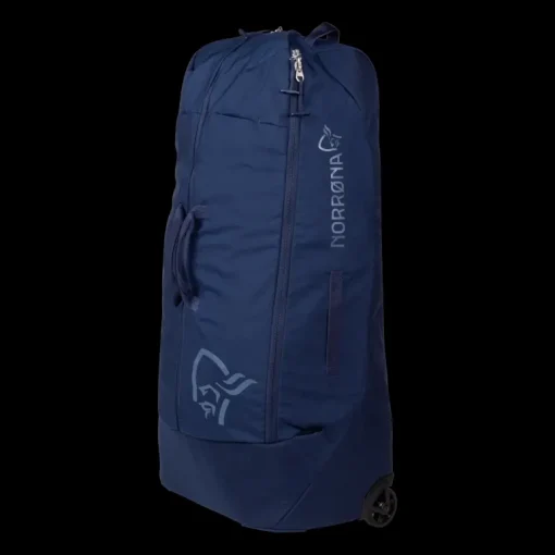 Detta är Norrønas stabila, hållbara och mycket väderbeständiga 120-liters hjulväska. Den har en minimalistisk och typisk Norrøna-design med aluminiumkrokar och ton-i-ton-loggor. Istället för vanliga teleskophandtag finns det två diagonala handtag ovanpå för bekvämt rull, vilket hindrar bagen från att träffa baksidan av benen.