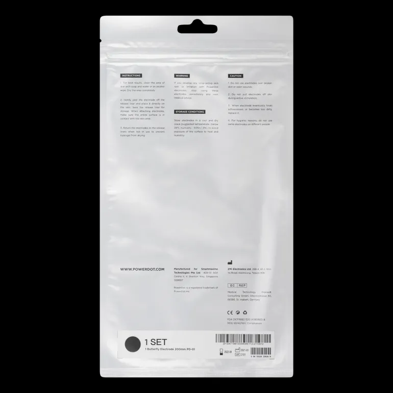 Förpackning med återanvändbar Butterfly Pad perfekt för behandling av smärta eller återhämtning i korsryggen. Kompatibel endast med PowerDot 2.0.