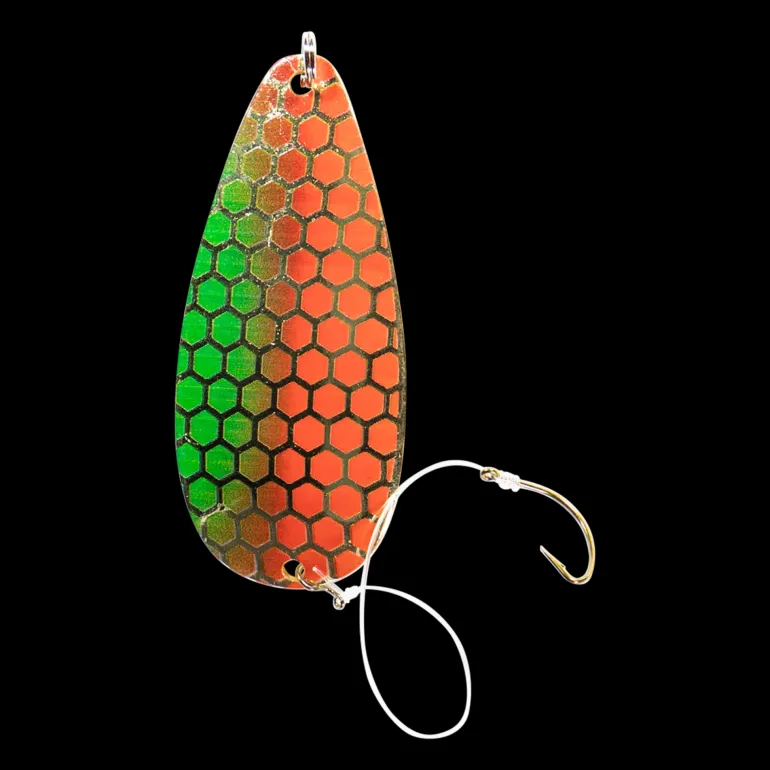 Attraktivt rödingblänke med traditionellt kopparmönster. Leveres komplett med maggotkrok. Längd: 70 mm. Vikt: 17 g.