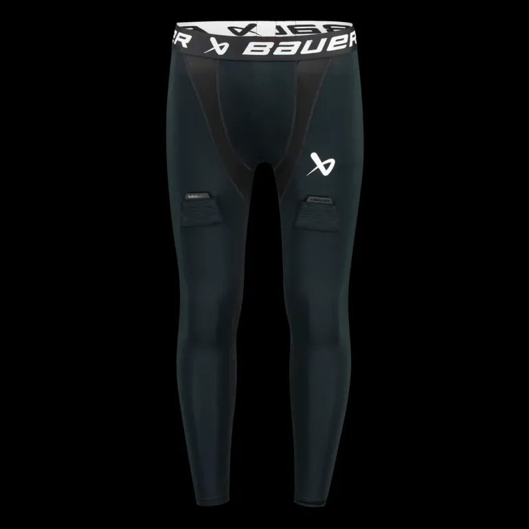 Bekväma kompressionsbyxor med integrerad suspensoar designade för att bäras under hockeybyxor. Fästpunkter med kardborreband, enkel fastsättning av utrustning.