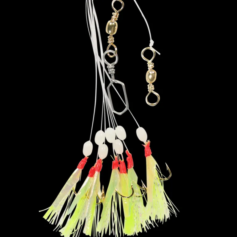 Effektiv och attraktiv rigg för havsfiske, med kraftig nylonlina och vassa krokar. Färdigriggad och klar att användas.