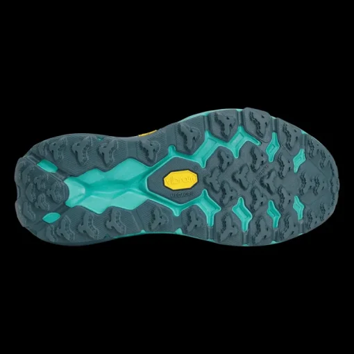 Yttersulan har Vibram Megagrip-gummi med små taggar på knopparna som ger bra friktion när underlaget är mjukt och fuktigt.