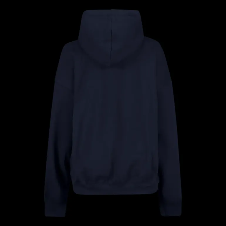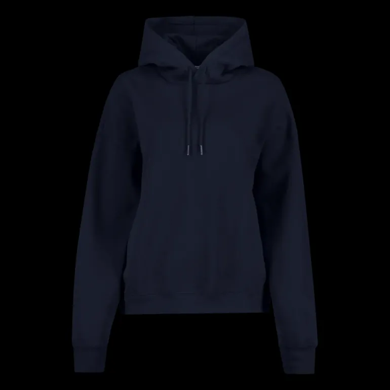 Bekväm och stilren huvtröja i ekologisk bomullsblandning. Lös passform med sänkta axlar, samt ribbstickning i ärmslut och nederkant.
