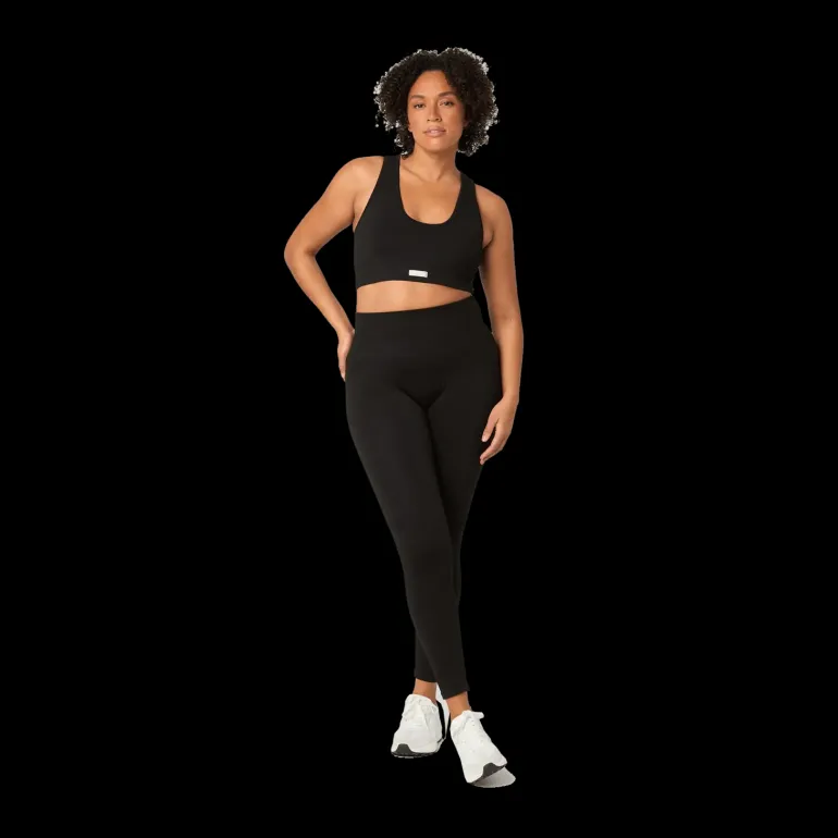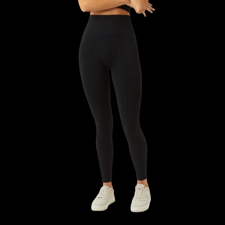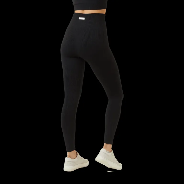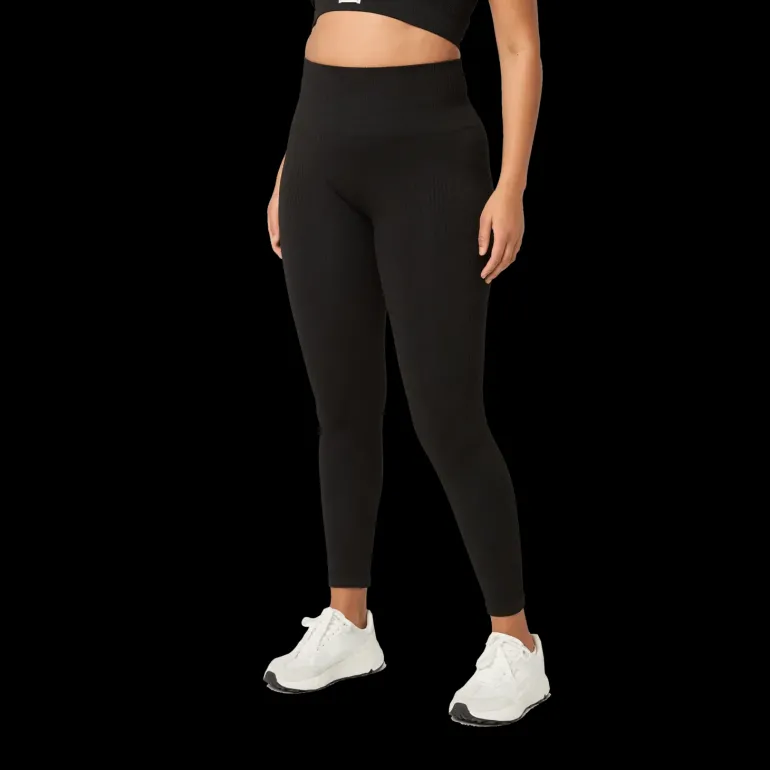 Sköna träningstights med hög resår i midjan och ribbat material som garanterar god rörelsefrihet. Sömlösa material ger stor komfort.