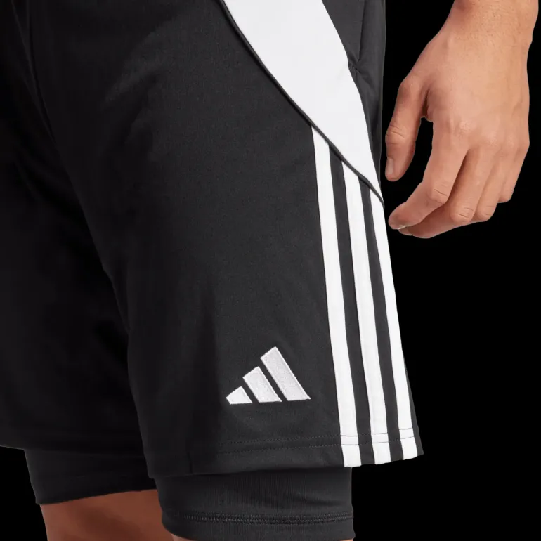 Tiro 24 Training Short 2in1 från adidas är tillverkade med AEROREADY-teknik. Det innebär att shortsen produceras i fukttransporterande material för att hålla dig torr och sval under hela träningspasset.