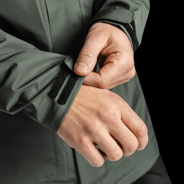 Jackan har flera praktiska fickor och bra justeringsmöjligheter på ärmarna och i huvan, vilket ger en optimal passform.