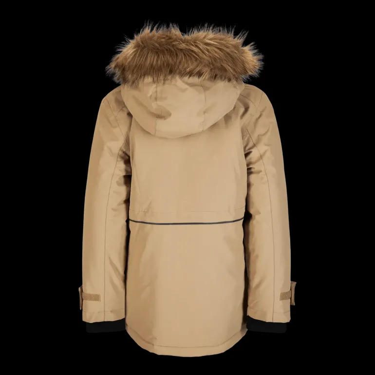 Fin vinterparkas i vind- och vattenavvisande material. Huva med fuskpäls ger ytterligare skydd mot snö, regn och vind.