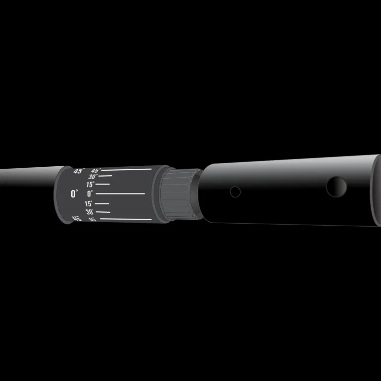Med delningslösningen kan du ställa in den från 0 till 90 graders vinkel i 15 graders steg.