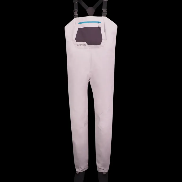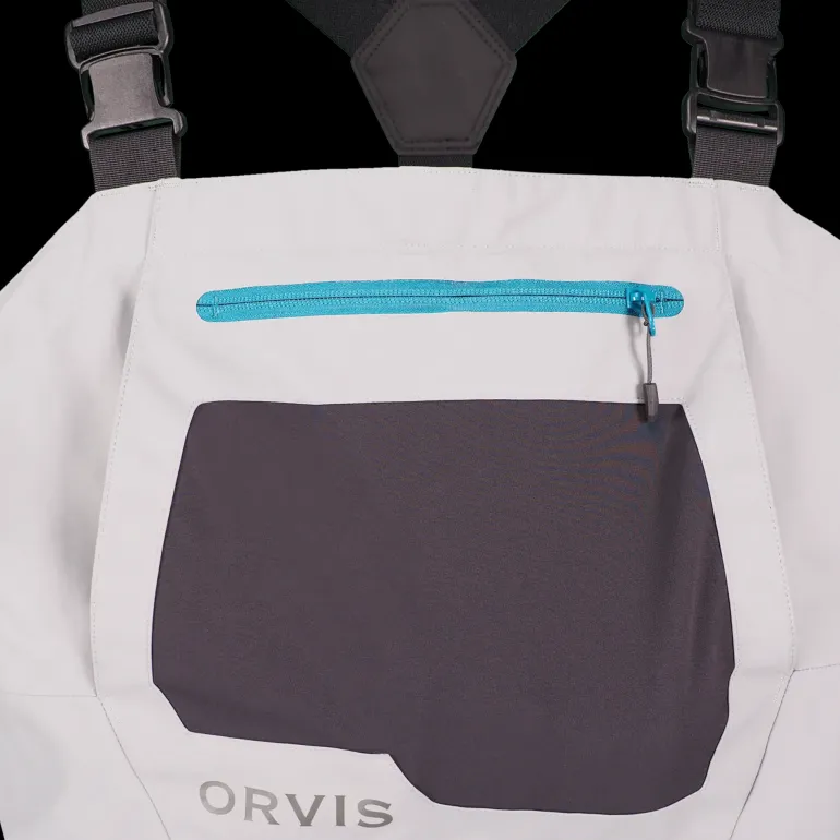 Clearwater Wader från Orvis har flera praktiska lösningar som utvändig förvaringsficka i stretch, anatomiska neoprensockar, grusskydd och handficka.